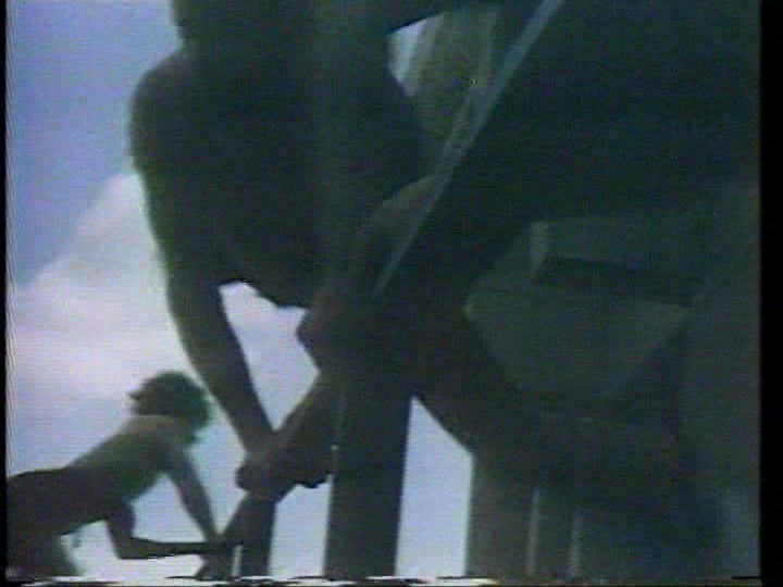 A week after House of Trés and It Doesn’t Wait aired, Alive from Off Center presented five videos from different countries under the title Music Transfer. The piece from Germany, by Klaus Blume, is Kneeplay (Kniespiel), and it uses what I call a sort of cinéma-musique-concrète treatment (à la Jon Appleton) of traditional Bavarian Schuhplattler dance. (Not to be confused with Robert Wilson’s “Knee Plays”—i.e. intermezzos for various operas—, which involve movement.) The same video (not audio) technique is employed in last year’s Chaka Khan promo for “Like Sugar,” featuring choreography by Olivier Casamayou (and bassline by Fatback Band).